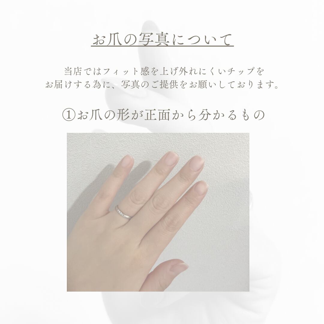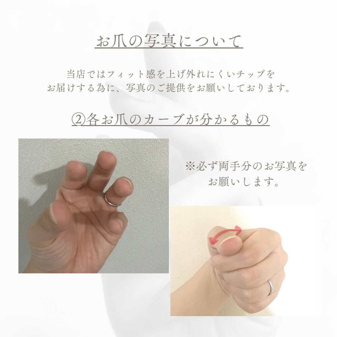 ※お爪のお写真は正面から爪の形が分かるものと、爪のカーブが分かるものの2パターンをお願いしております。