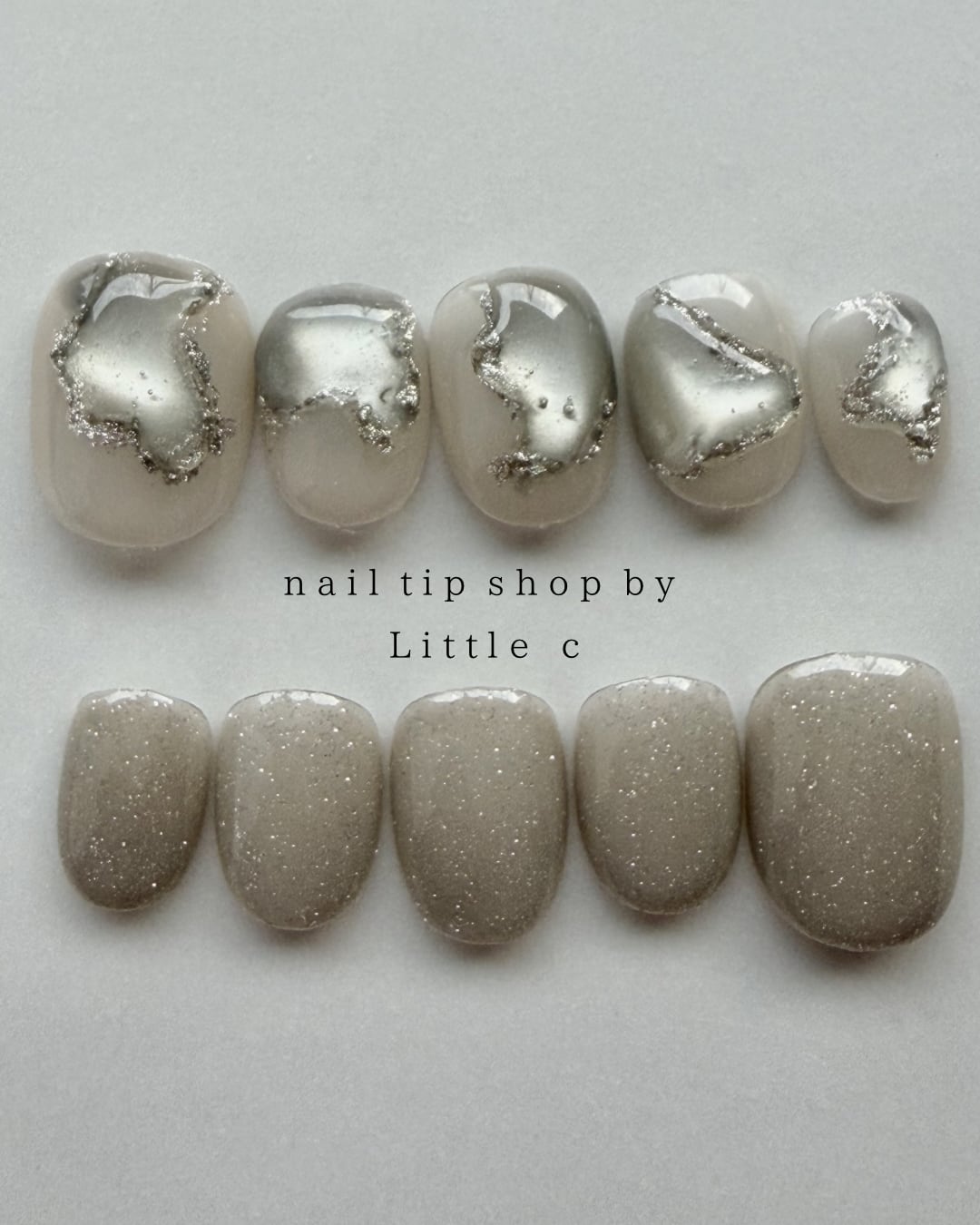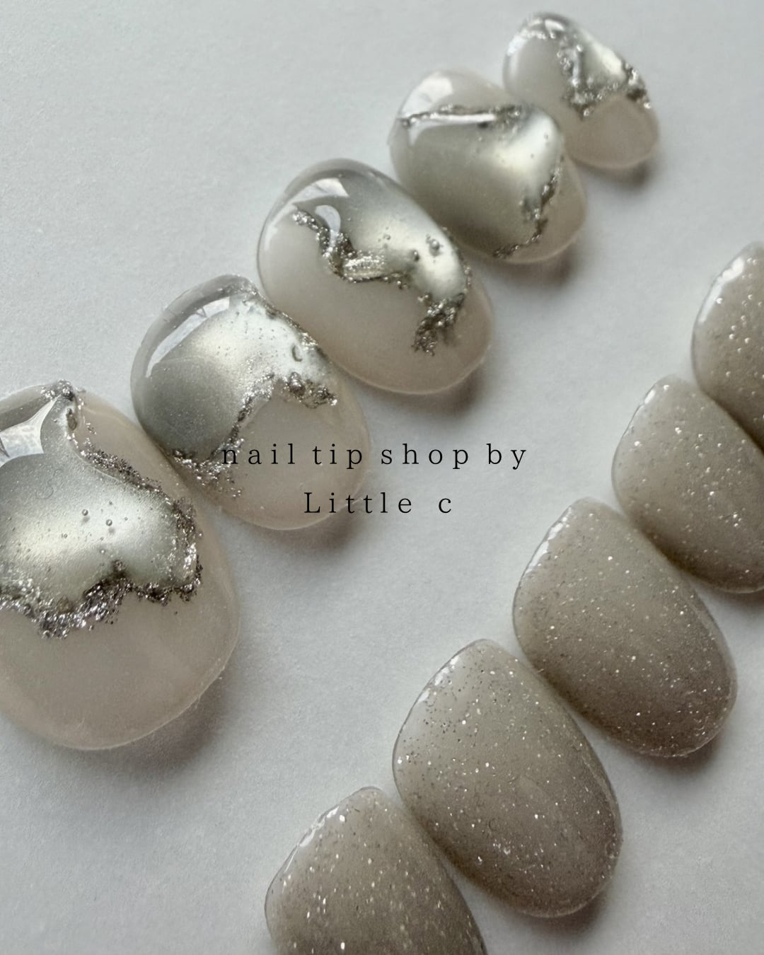 片方のデザインは淡く仄かにキラキラ輝くフラッシュネイル。